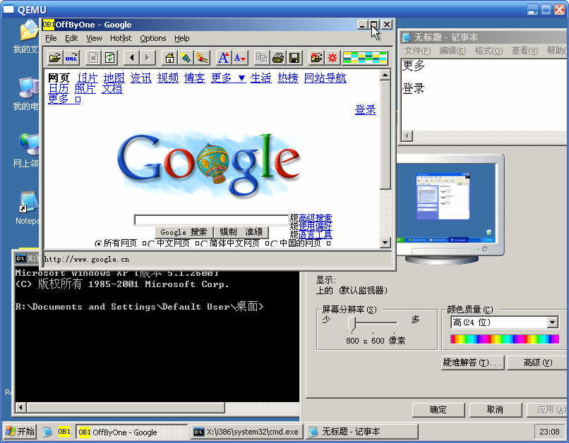 完成后, WinBuilder程序会生成ISO文件, 并用qEMU模拟器直接启动运行PE