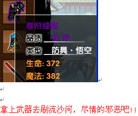 (3)到地图天宫道,随便打一把沙僧的武器后,初始攻击就是