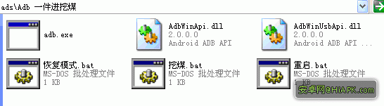 4、解压附件的压缩包,如图,想挖煤就点“挖煤”,想进入recovery卡刷界面就点“恢复”