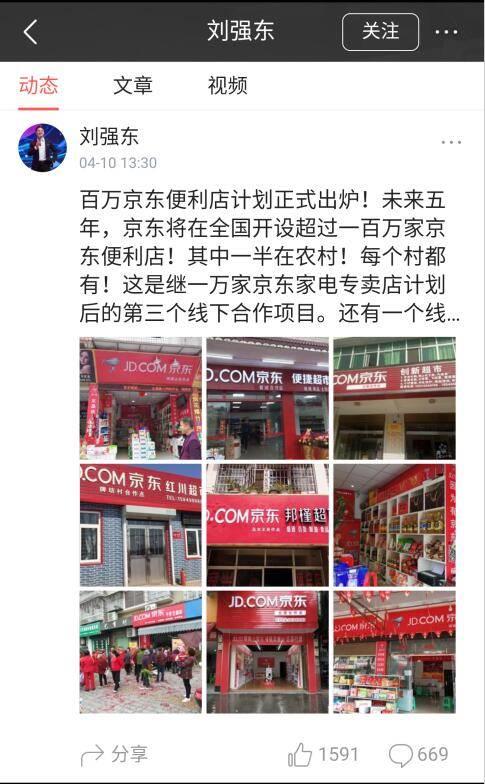 1、刘强东说要开设100万家京东便利店是怎么回事?