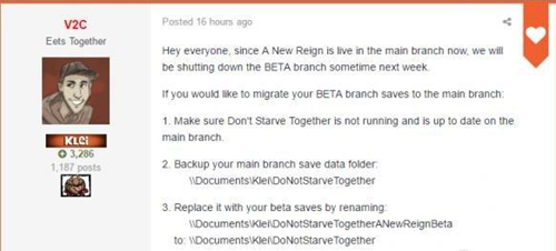 饥荒:联机版新推出了新的测试版本,版本号为212819,很多玩家都想到这个版本的测试服以后就会关闭,那怎么把饥荒:联机版212819beta版本的存档怎么转移到正式版本,成为玩家想了解的关键,下面就为大家带来饥荒:联机版存档转移方法介绍,希望能帮助大家。