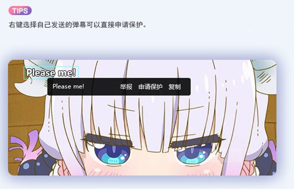 用户可以在弹幕列表当中查看自己的已发弹幕,然后点击选择(Ctrl多选)进行保护,或者通过在视频弹幕当中右键选项进行保护。