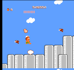G: 在进终点前的悬崖边上跳起(无限接关的道具)