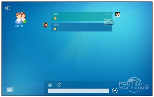总体来说,整个试用还算OK!Metro版QQ在吸收了Win8 Metro风格的同时,初步完成了一些基本沟通服务,如文字交流、新消息提醒等。而且从目前来看,这两项功能都没有明显Bug。然而除此之外,Metro版QQ与传统版QQ的差距还比较远,影音通话、文件传输、特殊元素输入都没有加入现行版本,个别已包括的功能也是漏洞百出。同时与普通版QQ一样,Metro版的在线/离线也是相对于本组而言,并不能像WebQQ那样直接显示所有在线与离线的好友列表。而好友管理的缺失,也让它在一定程度上还不能脱离传统版QQ,因此目前这一版还仅能称之为Win8的一次试水。