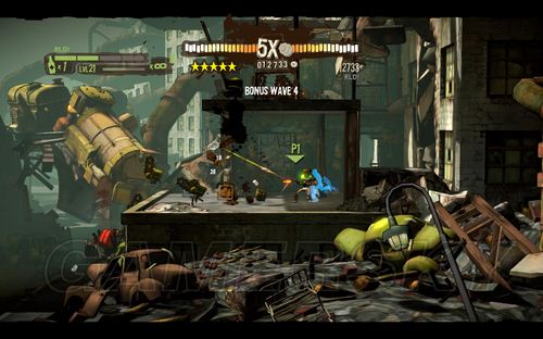 本关多注意走动(提前升级强力武器)第二波注意左侧墙上的机炮在高处俯视射击下方敌人即可,第四波多到高处去引诱大型蜘蛛机器人然后偷袭后方,第五波建议先清理小兵然后再去打自走机枪(炸弹最好用来炸机枪).