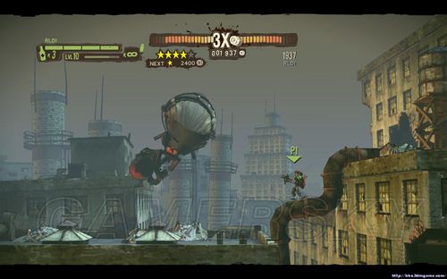 到了屋顶之后会有一定数量的敌人出现(注意火箭机器人)前进一段距离后从上方的管道通过(建议从上方管道通过).'BOSS战',首先躲开BOSS扔下来的第一枚炮弹(到右上管道即可)之后等BOSS降低飞行高度扫射击败即可(小型导弹是可以打掉的)