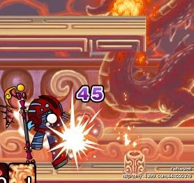 打法很简单:2段跳+七十二+重斩(在这里重斩的缺点明显了。。。攻击速度太慢,可以用烈焰风暴代替)