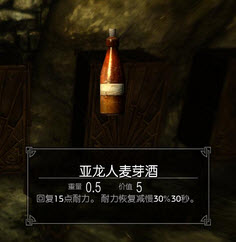 在天际中的麦芽酒就属于ale,ale也比通常的啤酒酒精度更高,这也符合了在天际寒冷的气候下人们饮用酒精度更高的啤酒来以达到取暖的目的,ale在天际出现的频率也是非常高的,可谓是居家旅行必备之良品,其中也不乏限量版的亚龙人麦芽酒Argonian Ale,还记得雪漫城的乞丐Brenuin让你去母马横幅偷的酒吗? 那就是Argonian Ale。