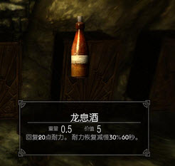 龙息蜜酒,如此霸气外露的名字,不愧是唯一的任务物品,在龙桥的Olda处接任务,当然,你可以在完成任务以后从Olda或者 Horgeir手里偷回来
