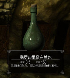 塞洛迪里奇白兰地Cyrodilic Brandy 是一种帝国进口的白兰地 非常贵(一瓶价值150赛普丁,在天际的酒类中是最贵的),原因是进口帝国物品的税,它的特别之处就在于能够强化饮用者的意志力和耐力而不会像其他的酒类一样造成任何副作用,可以在Plautis Carvain身上找到(从名字可以看出这家伙是4代Bruma城女伯爵Narina Carvain的后代,他带着老婆来天际参加皇帝表妹的婚礼,可以在龙桥或者独孤城外或者风盔城找到)