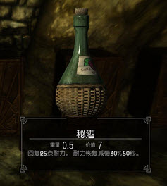 Spiced Wine秘酒,在独孤城的Evette San处可以买到,瓶标上写着San's Spiced Wine,应该是Evette San自制的葡萄酒了,在天际的许多地方也能找到