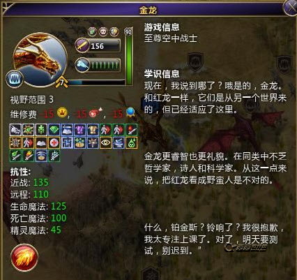 我的大法师跟金龙单挑,金龙只能打掉我15左右HP,而我的大法师可以打掉金龙40hp。