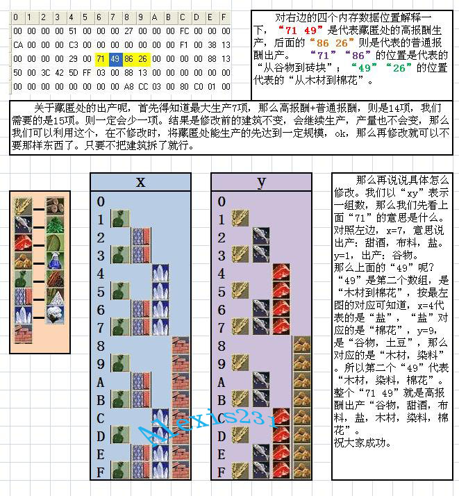 暂停游戏。进入藏匿处,搜索这个城内刀子的数量(你可以购买的刀子数量,不是你自己的),找到一个地址后,进入地址编辑。选择地址的时候,可以根据上面图中,数据格式选。格式都是相同,数据不同没关系。这时出来一大串编码,其他的不管,只看第三行编码,从左往右数到第7个,从这里开始。。。。。