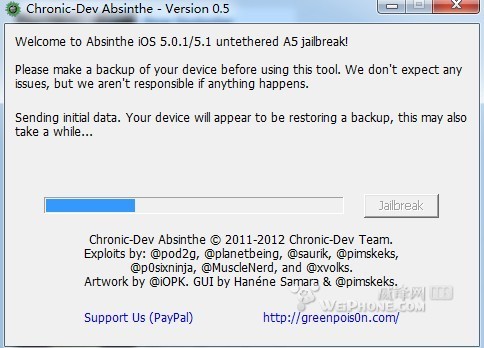 眼看Pod2g的iOS 5.1.1完美越狱临近发布,无论是付费版的越狱工具,还是虚假的越狱工具,都抓紧最后的机会达到他们的目的。还记得iPhone 4S的iOS 5.0.1完美越狱工具Absinthe吗?Absinthe工具此前的版本为0.4,可是最近一些不怀好意的人对Absinthe 0.4的界面稍做修改,变成Absinthe 0.5,骗称这是iPhone 4S和iPad的5.1.1完美越狱工具。