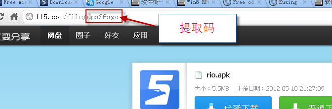 举例子:在ht t p:/ /u .1 15 .c om/file/ 后面加上提取码输入浏览器地址栏进入就OK了(网址中的空格要去掉!)