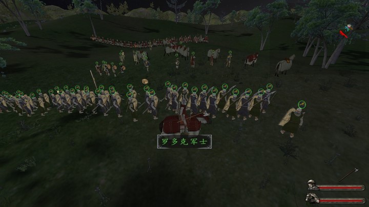 1.利用NPC骑马在前线堆人墙(送死)降低对方第一次骑兵冲锋伤害(想象一下用骑兵打草原强盗时,他们全堆在一起死一大片)