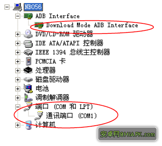 设备管理器中有ADB口,端口没有显示出来说明进入下载模式了。如下图所示: