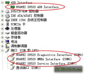 表示ADB口及其他三个端口已经正常显示,驱动已经成功安装。