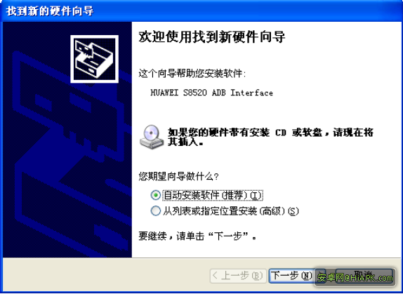 遇到这种情况的时候,手机开机并连接电脑,这时有可能会出现安装驱动向导,如下界