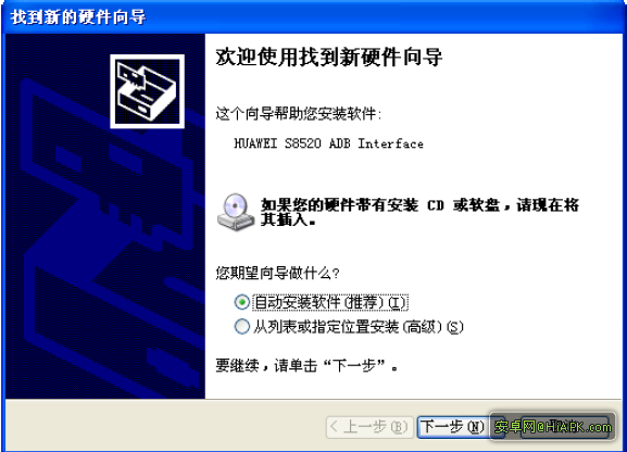 安装的过程中会出来安装新硬件向导,点“下一步”就会自动安装。