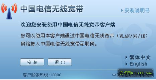 打开CD-ROM后直接双击Autorun.exe安装文件,出来中国电信无线宽带客户端,如下