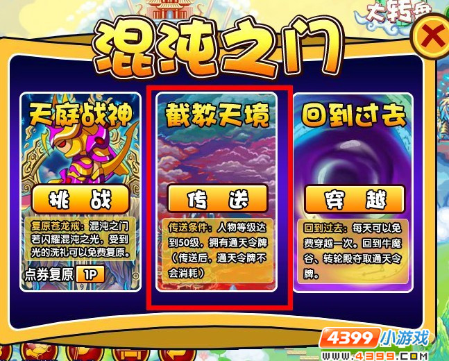 三、混沌之门新世界地图“截教天境”开启(50级以上玩家并且拥有“通天令牌”方可进入)