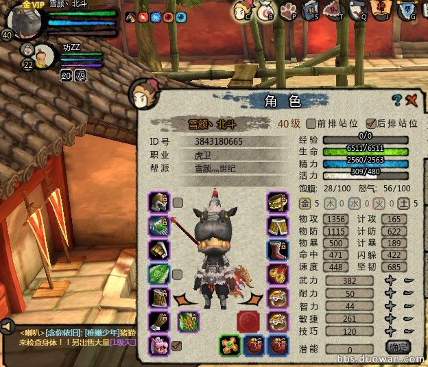 这是我无料理状态下的面板 配饰不太好 由于坑爹的龟速所以个人还是建议大家选择恶狼装的 以前速度有近500 做了把中品猛虎紫斧所以降到了450 虽然不是恶狼 但它也很争气的改了2 当然以后有恶狼还是得换 关于爆击问题 个人认为 那是看脸的东西 可能很多人会问 那为什么虎卫必偷冷酷无情 在下面的技能说明里我会说出我的看法 关于计防问题 这正是我们李儒找不到队的硬伤 所以选择一条好的思暇和一个好的荷叶是必须的 即使这只能让我们提高150左右的计防 上图荷叶我没带 带后近700 虽然这还远远不够 但至少在一个石脑的帮助下不会那么伤
