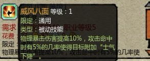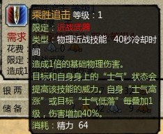 威风八面:无论是10%的物爆或是配合着乘胜的附加士气下降 都证明了这是个好技能