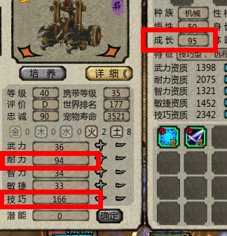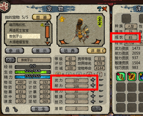 在桃园游戏中,我们都知道成长影响系统分配的固定点数,而且由于成长不能改变,所以绝大多数人非常在乎成长。但是宠物成长真的重要吗?在小编看来,就算你的宠物成长再渣,40级时你主加的点数依然是166(不考虑参战的九牛、坚不可摧这类技能),所以说,成长只是对次要属性产生微乎其微的影响,对主属性一点影响都没有!