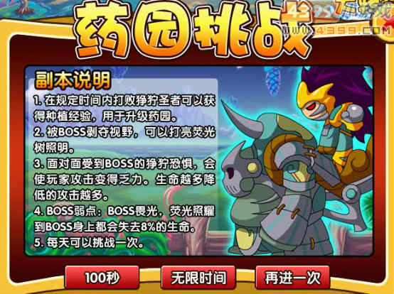截教天境狰狞药园副本BOSS狰狞圣者每天只能挑战1次。