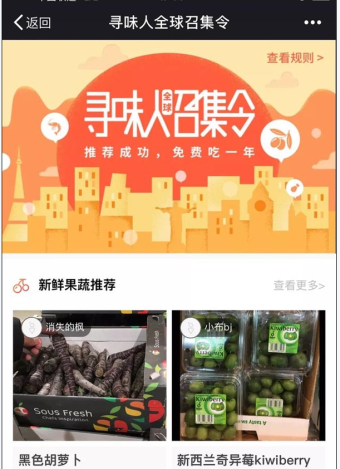 5月30日至6月30日为上传期,登录京东生鲜“寻味人”页面,上传优质、新奇地生鲜产品,进行推荐。为了方便专业买手进行鉴定和筛选,参选消费者需注明产品名称、产地、当地售价、产品相关图片等素材,并留下个人联系方式。