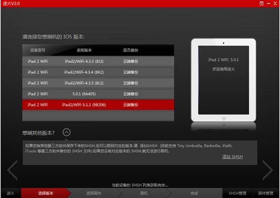列表中的信息设备上可刷的系统版本,即曾经保存过的SHSH版本。