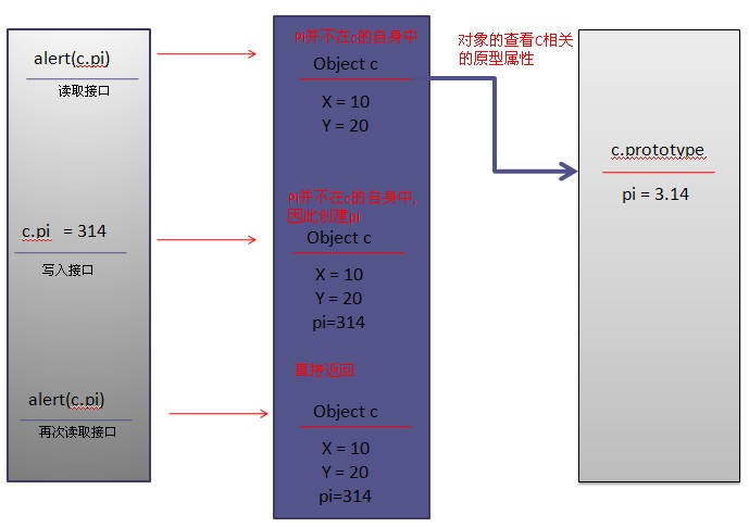 通过B.pi = 314; 设置并不会改变prototype.pi 的值