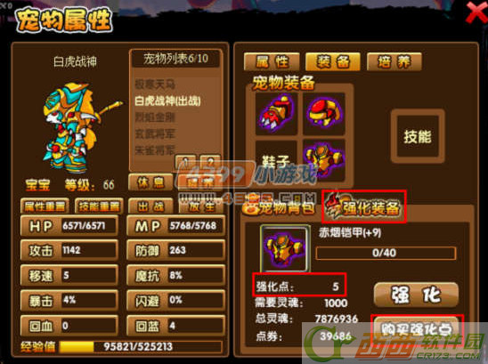 友情提醒:选择宠物将要强化的装备穿上,打开“强化装备”点击装备栏的装备即可。