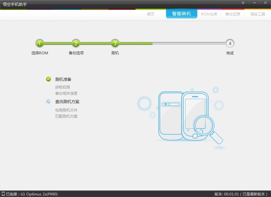 6、等待悟空手机助手连接服务器,查找刷机方案
