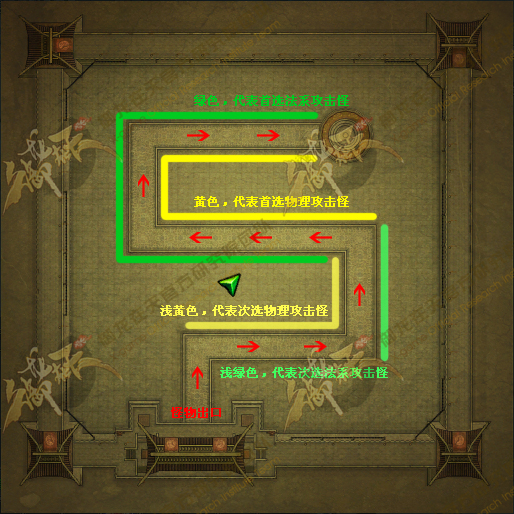 绿(色)区域,代表首选建法系攻击(即减防或减速)的位置