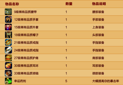 礼包内容一览: