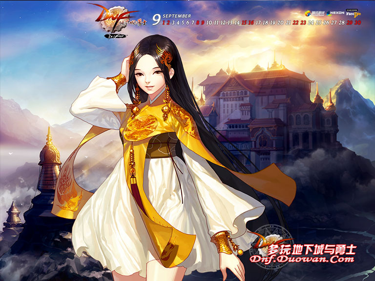 官方的9月份壁纸是素喃的城门狮子和阿斯卡妹子。