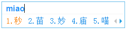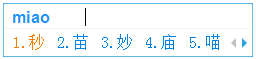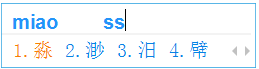 使用辅助码来快速定位一个单字,比如想输入“淼”,先输入拼音“miao”: