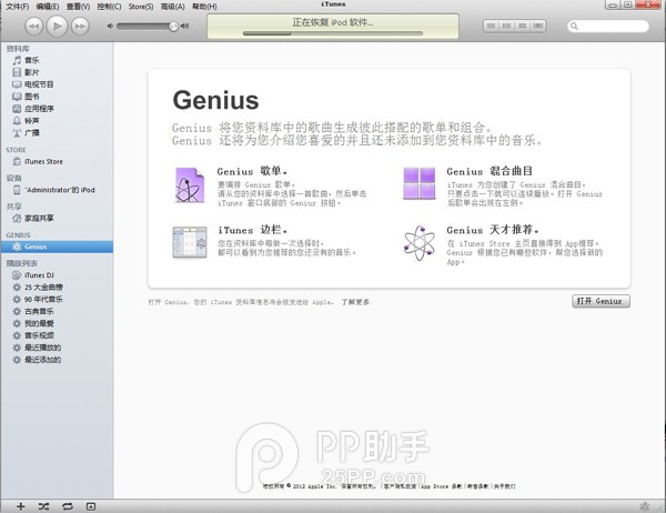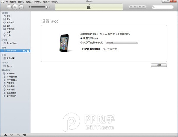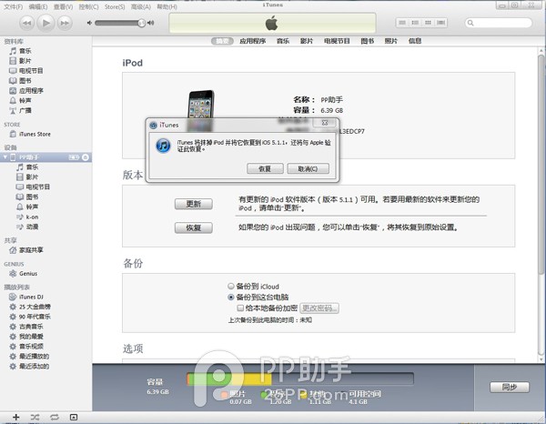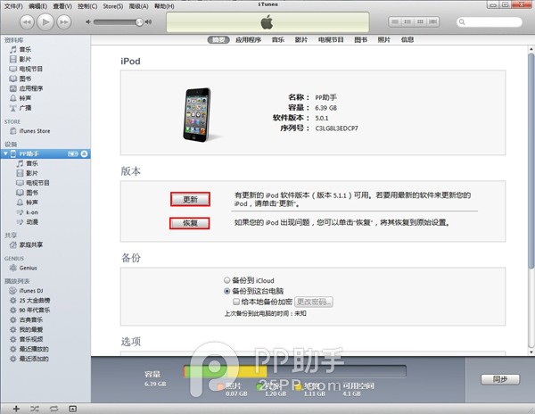 提示:通过iTunes升级或恢复会导致清空设备上所有的资料,建议先备份好重要资料。