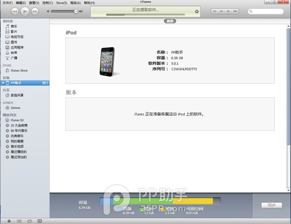 提示:通过iTunes升级或恢复会导致清空设备上所有的资料,建议先备份好重要资料。