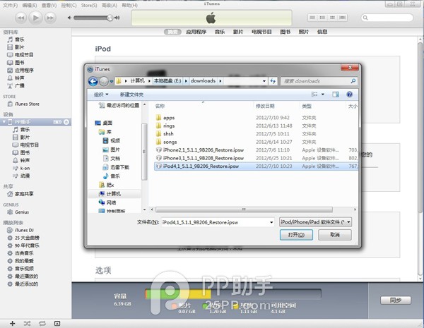 4. 选择已经下载固件,等待iTunes运行。