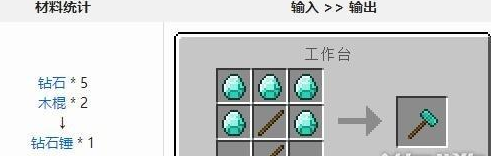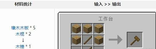 锤子的合成比较简单,如果要制作其他的锤子,只要将木板换成对应的材料就可以了,比如铁锤就是铁锭和木棍合成的。