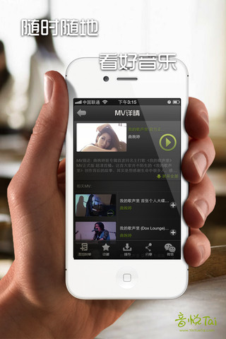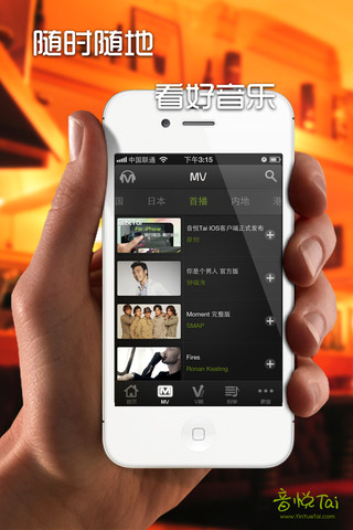 音悦台iphone客户端:http://itunes.apple.com/cn/app/yin-yue-tai/id527477885?mt=8