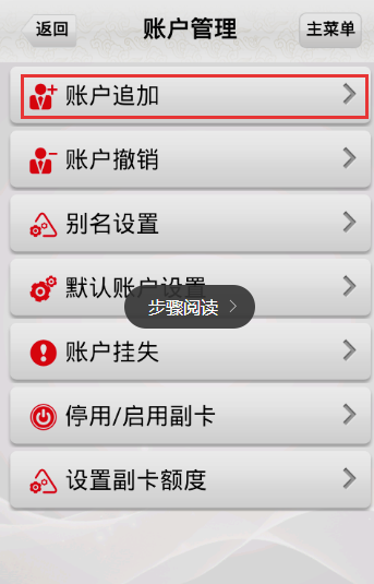 点击账户管理,进入手机银行账号管理界面,此时可以看到账号追加选项。