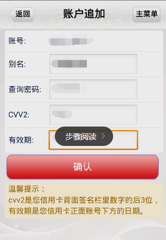 卡号输入完毕后点击下一步,按照提示要求输入要填写的信息。