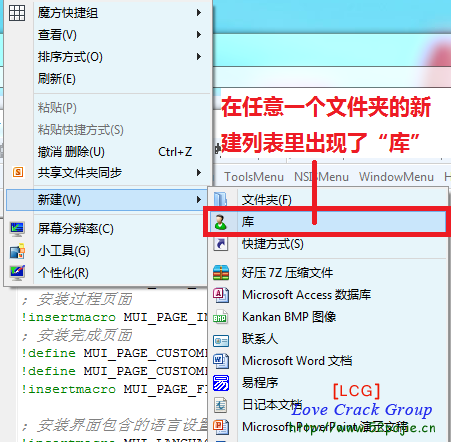 Windows的库,默认是不允许你在除了资源管理器专用的库区域创建库文件