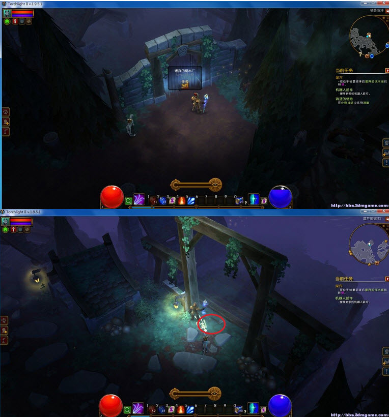 6.到碎裂战场找到幽灵菲德并帮他完成任务后他就会到你到任务地图,到新地图后将地图里所有的树桩打掉,地图左方原本有一堆漂流木的河道就会聚集在一起出现新路。