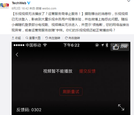 据消息称,乐视视频已无法登入,影响到大量乐视会员用户观看体验,并在微博上抱怨乐视单方面出现的问题。