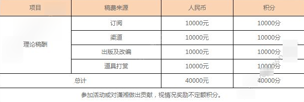 理论稿酬: 作家通过潇湘书院所获得的订阅及渠道销售稿酬、互动道具分成、版权拓展(含出版)等,即为作家理论稿酬。